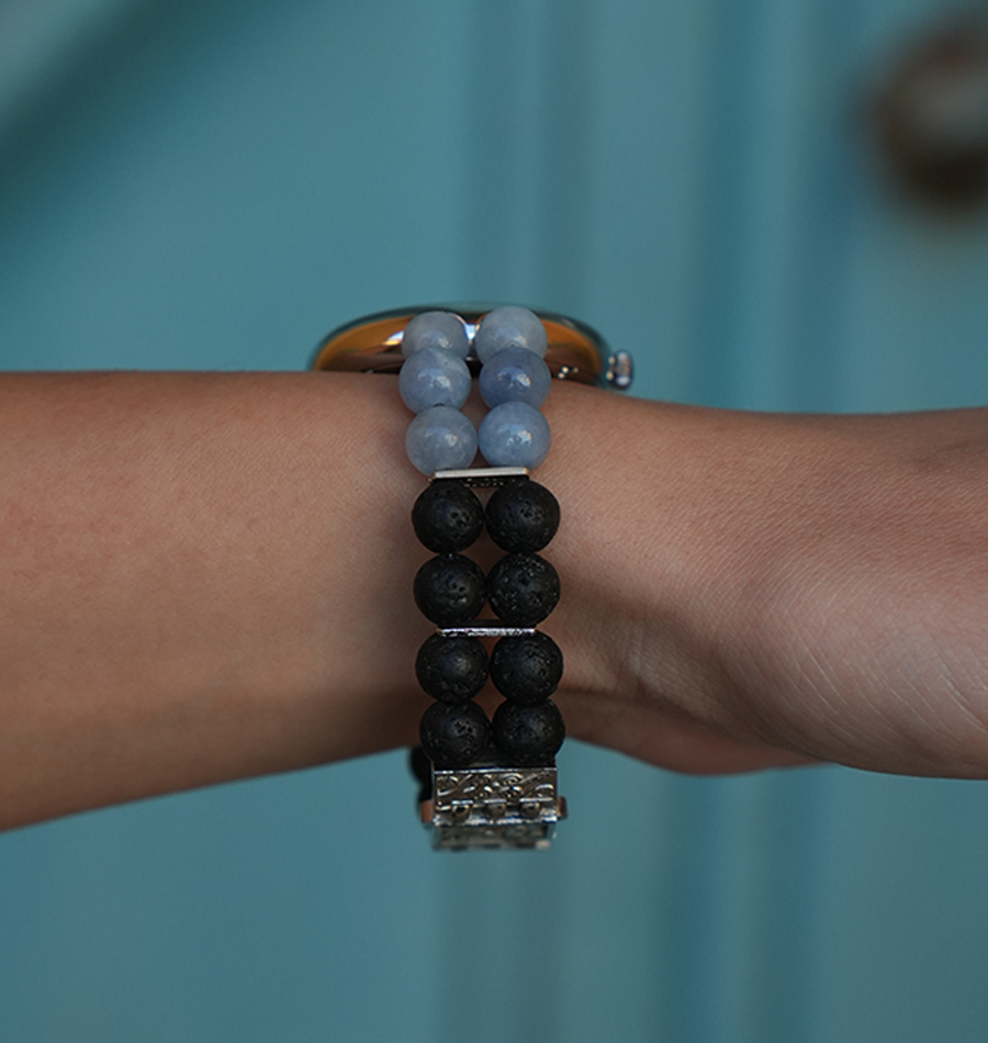 Kordondaki lav taşı, volkanik bir oluşumla meydana geldiği için güç, dayanıklılık ve topraklanma enerjisini temsil eder. Volkanik kökenleri nedeniyle kök çakra ile ilişkilendirilir; cesaret ve motivasyon sağladığına inanılır. Volkanik bir patlamanın ardından oluşması, aynı zamanda yeniden doğuş ve arınma sürecini de sembolize eder. Konseptimizde, Mavi Lagün'deki volkanik kayaçları lav taşı ile sembolize etmek istedik.