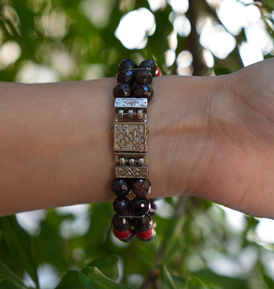 Kordonu oluşturan garnet, diğer adıyla granat taşı, adını Latince “granade” olan narın bizzat kendisinden alır. İsmi gibi enerjisi de narinkiyle aynıdır. Enerji verici özelliği olduğuna inanılan granat, motivasyon konusunda da destekleyicidir. Derin kırmızısı nedeniyle tutku, aşk ve romantizmde canlılığı yeniden ateşleme enerjisi olduğu kabul edilir. Güçlü bir koruyucu taş olduğuna da inanılan granat, seyahatlerde taşınması ile de bilinir.