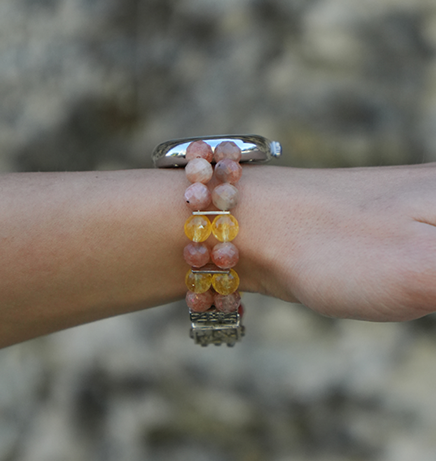 Bu saat, evrenin en güçlü enerji kaynaklarından biri olan Güneş’in canlandırıcı ışığını ve sıcak rengini bileğinizle buluşturuyor. Güneş taşı, tıpkı ismini aldığı güneş gibi yaşama sevinci, neşe ve iyimserliği artırdığına inanılan güçlü bir taştır. Kişiye kendine güvenme konusunda destek olduğu için özgüveni yükselttiği, kişinin kendi olma cesaretini güçlendirdiği düşünülür. Solar ve sakral çakralarla ilişkili olması sayesinde yaşama sevinci, kişisel güç, irade ve özgüven enerjilerini temsil eder.